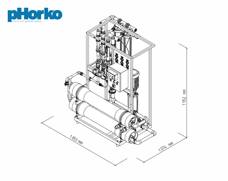 Klasik arıtım sistemlerinin yetersiz kaldığı sulara (denizsuyu, iletkenliği yüksek olan sular , kuyu suları vb.) uygulanan, suyun içindeki istenmeyen tüm mineralleri sudan ayıran, saf su eldesine yönelik membran filtrasyon işlemine Ters Ozmoz denilmektedir. Ozmoz, doğal bir olaydır ve kısaca suyun az yoğun ortamdan çok yoğun ortama geçmesidir. Bu işlem ozmotik dengenin sağlanmasına kadar devam eder. Ters ozmoz ise, bu ozmotik akışın tersine çevrilmesidir. pHorko COLT NOX2 8'' Serisi Ters Ozmoz (RO) Sistemleri bu işlem sonucunda saf su elde edilmesini başarılı olarak sağlamaktadır. pHorko COLT NOX2 8'' Serisi Ters Ozmoz (RO) Sistemleri ise müşteri isteklerine göre farklı dizayn ve tasarım şekillerine göre üretilebilmektedir.