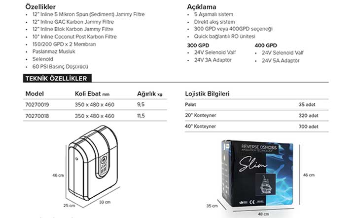 Phorko Slim Dijital Restoran Su Arıtma Cihazının Teknik Özellikleri