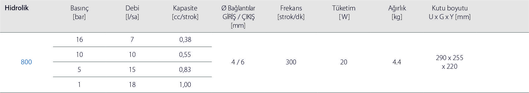 • Debi aralığı: 2,5 – 110 l/sa, 20 bar’a kadar